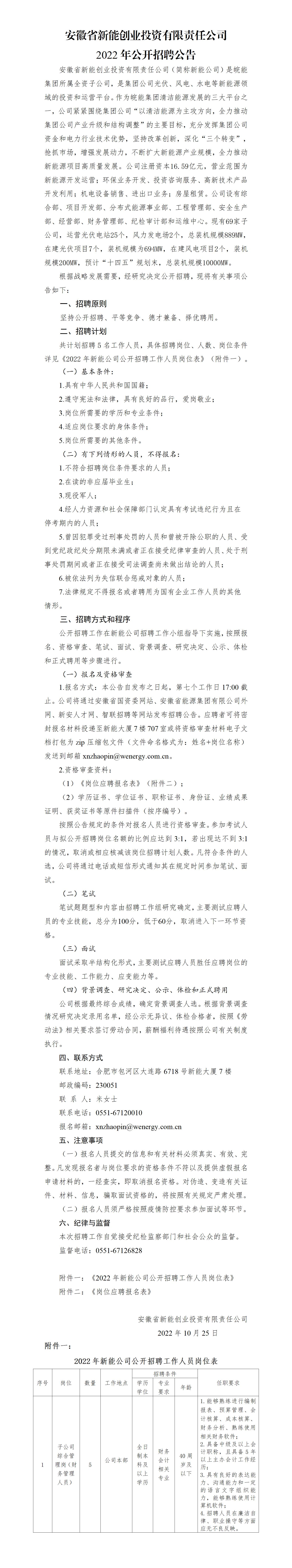 安徽省新能創(chuàng)業(yè)投資有限責(zé)任公司2022年公開招聘公告