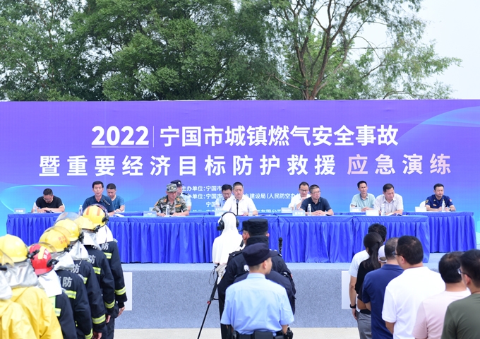 9月18日上午,由寧國市人民政府主辦,寧國市住房和城鄉(xiāng)建設(shè)局(人民防空辦公室)、寧國市應(yīng)急管理局承辦,省天然氣皖能港華公司協(xié)辦的2022年寧國市城鎮(zhèn)燃?xì)獍踩鹿属咧匾?jīng)濟(jì)目標(biāo)防護(hù)救援應(yīng)急演練在寧國市成功舉辦。