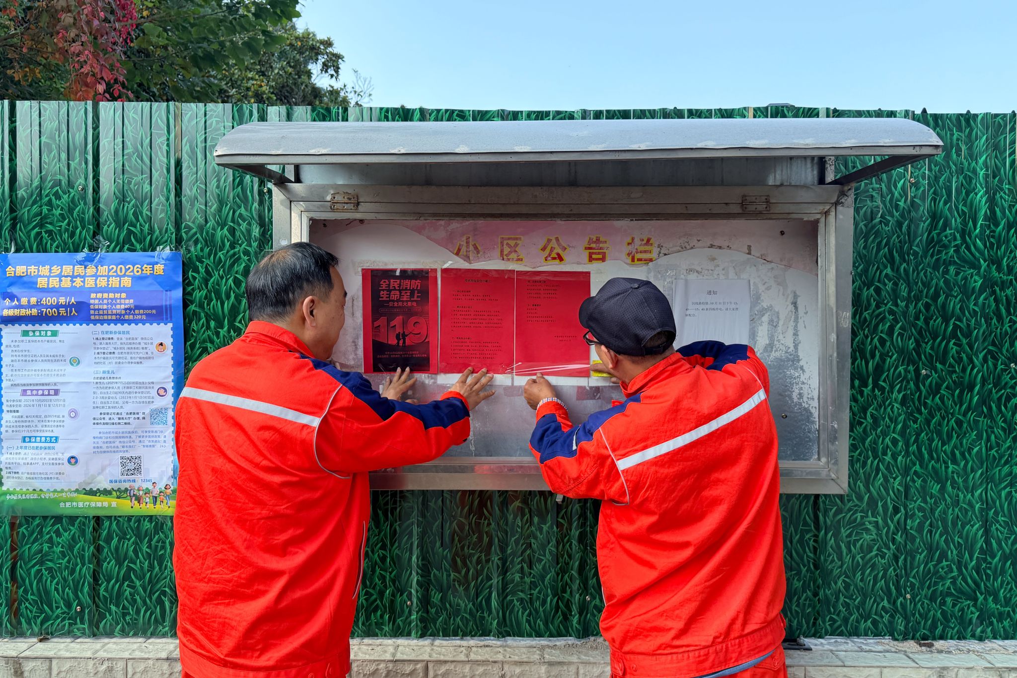 在小區(qū)公告欄張貼用火用電安全小貼士 李澤宇 攝