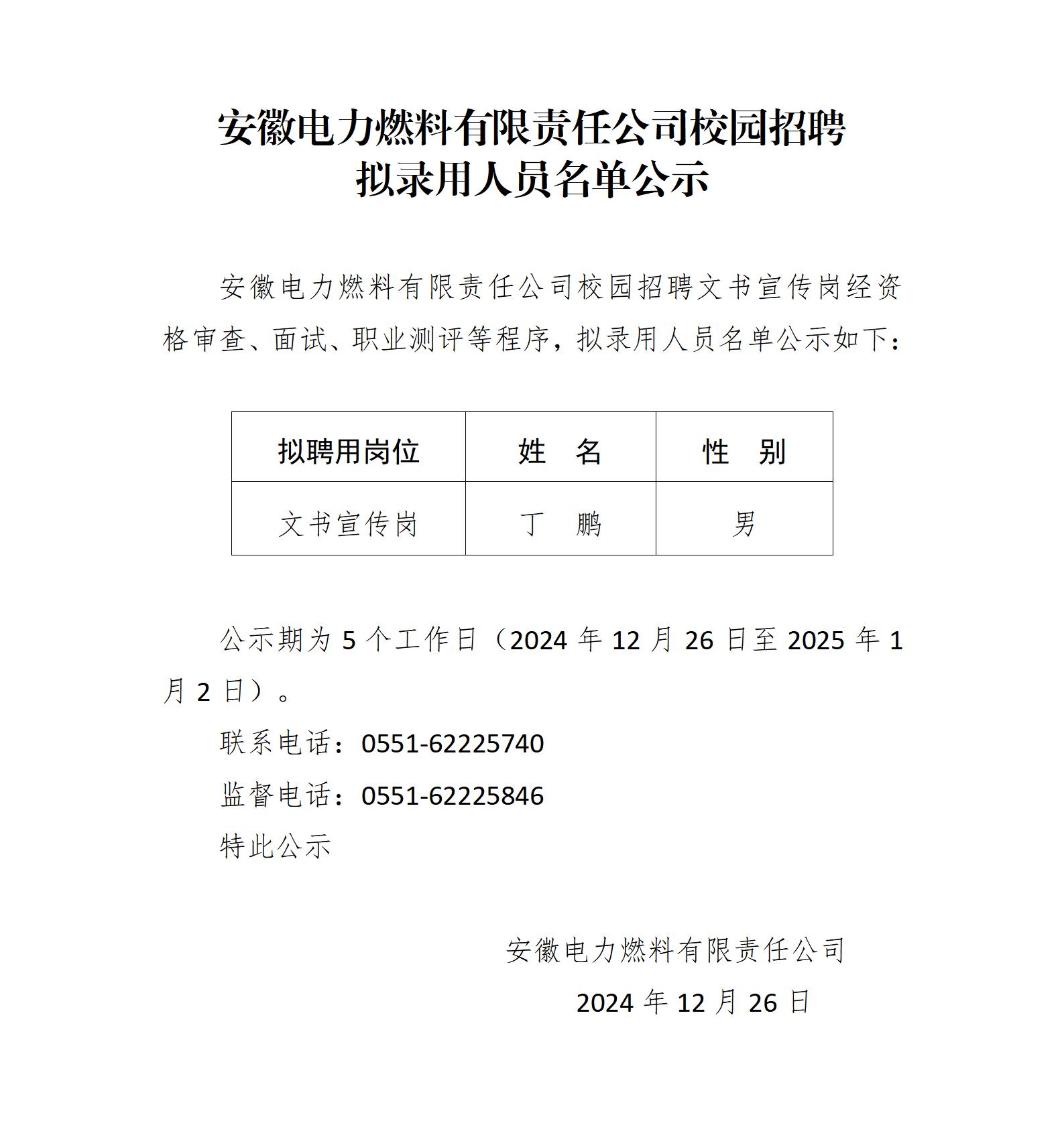 安徽電力燃料有限責(zé)任公司校園招聘擬錄用人員名單公示